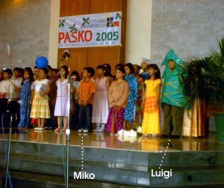 Then they had the “Ang Bertdey ni Jesus Bukas” – where they showed happenings for every year. Miko got September, Thanksgiving. He played a young boy with his family, going to church. Nung naglalakad nga na naka-praying pose, tapos lumuhod pa, natatawa yung ibang teachers na katabi ko. Narinig ko sabi nung isa “Parang di bagay kay Miko!” – si Ms. Jaja yun, who is sobrang natutuwa sa kakulitan ni Miko.