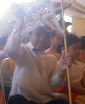Last Dec. 18, the kids had their Christmas Program. They paraded the parols they made during the week. They also danced the folk dances they performed during Linggo ng Wika last August (where parents were not allowed to watch). Luigi dancecd the Mantones de Ceda, while Miko danced the Malong Malong.